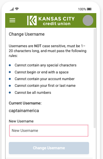 Kansas City Credit Union will soon require Members to switch to a username login vs. the current account number login for access to all online and mobile banking on It’s Me 247. This is intended to increase account security by keeping the account number more private. Please read the instructions below for how to set up your new username.